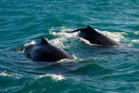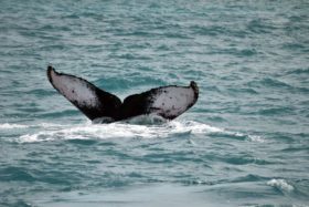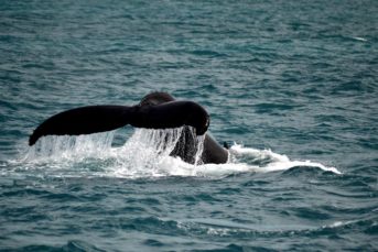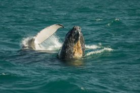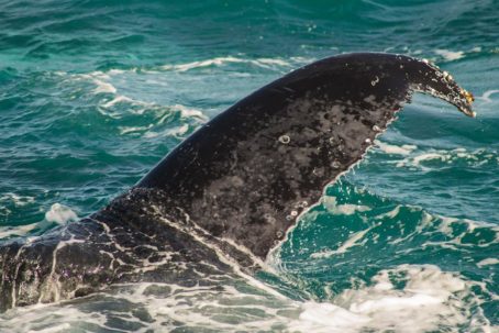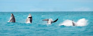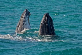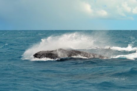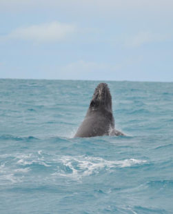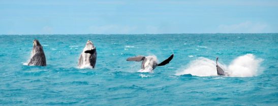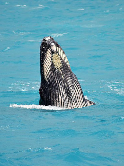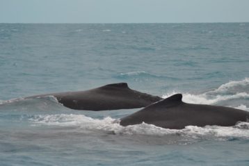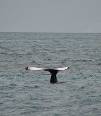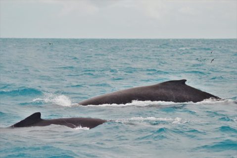 Navegando poucas milhas náuticas em águas rasas e tranquilas, encontramos uma área de grande concentração das baleias-jubarte, o que aumenta muito nossas chances de contemplar seu vasto repertório aéreo como saltos, batidas de caudal e peitoral, entre outros.